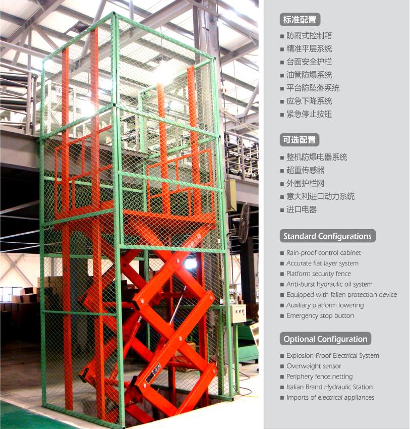 固定式液壓升降貨梯是用于貨物運送的專業(yè)液壓升降臺,主要應用于倉庫、車庫、車間等各種工作層間上下貨物輸送,具有廣泛的適用性,承載量大、升降安全平穩(wěn),安裝維護簡單方便,是經(jīng)濟實用的理想貨物輸送設備